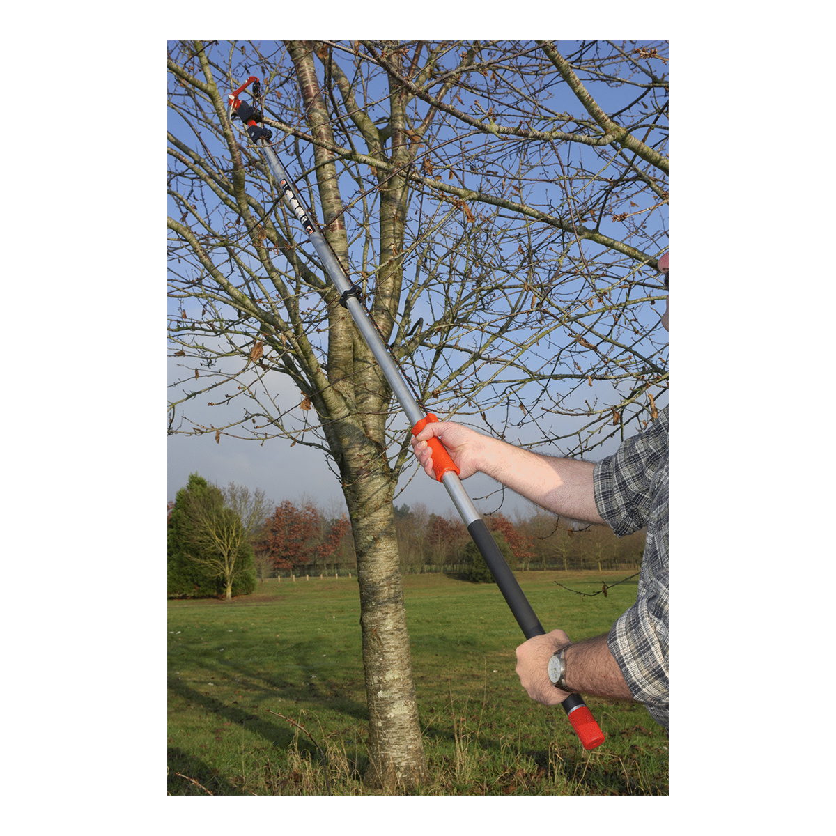 با طول 2200 میلیمتر، این قیچی به شما امکان میدهد تا شاخههای دور از دسترس را بهراحتی هرس کنید، بدون اینکه نیاز به بالا رفتن از نردبان باشد.