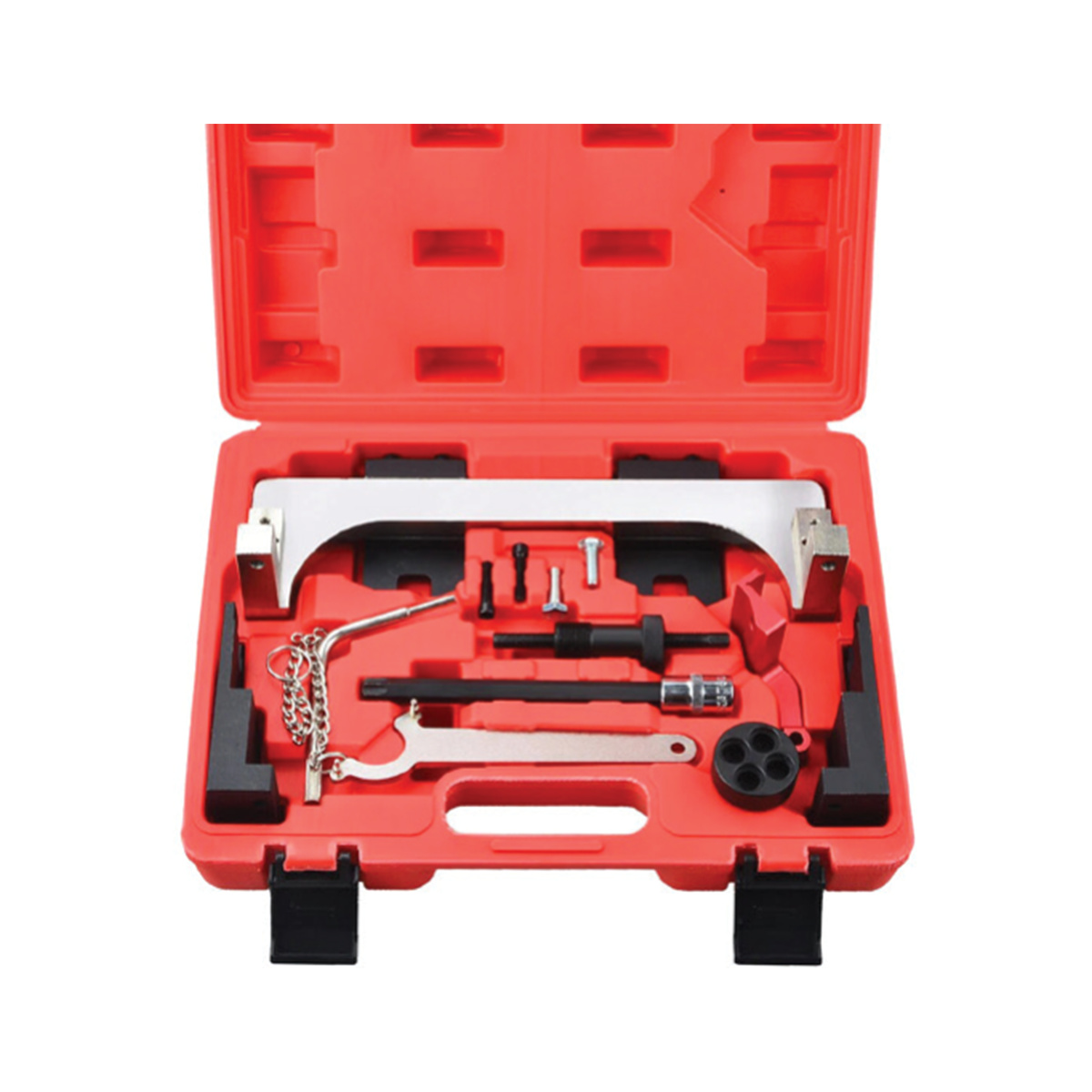 1. طراحی دقیق: ابزارهای موجود در این کیت بهصورت کاملاً حرفهای طراحی شدهاند تا دقت بالایی در تنظیم تسمه تایم و سایر قطعات موتور فراهم کنند.