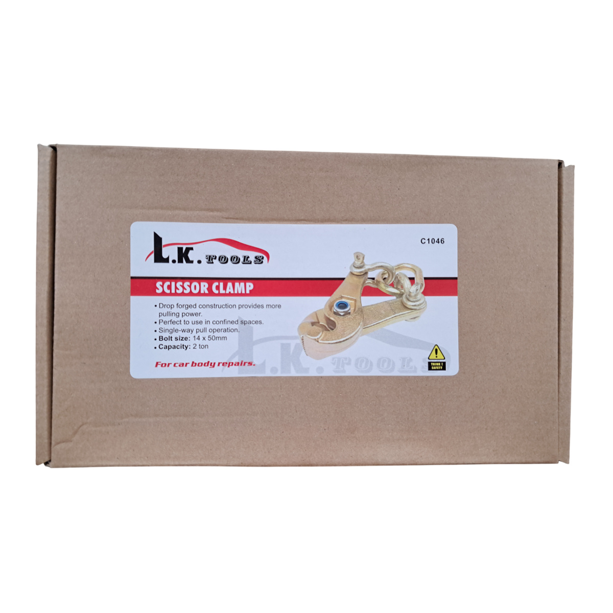 گیره فک قیچی صافکاری LK مدل C1046 با ظرفیت کشش ۲ تن و طراحی خود قفل شو، انتخابی ایدهآل برای رفع تو رفتگیها و گرفتن شاسی و ورقهای فلزی است.