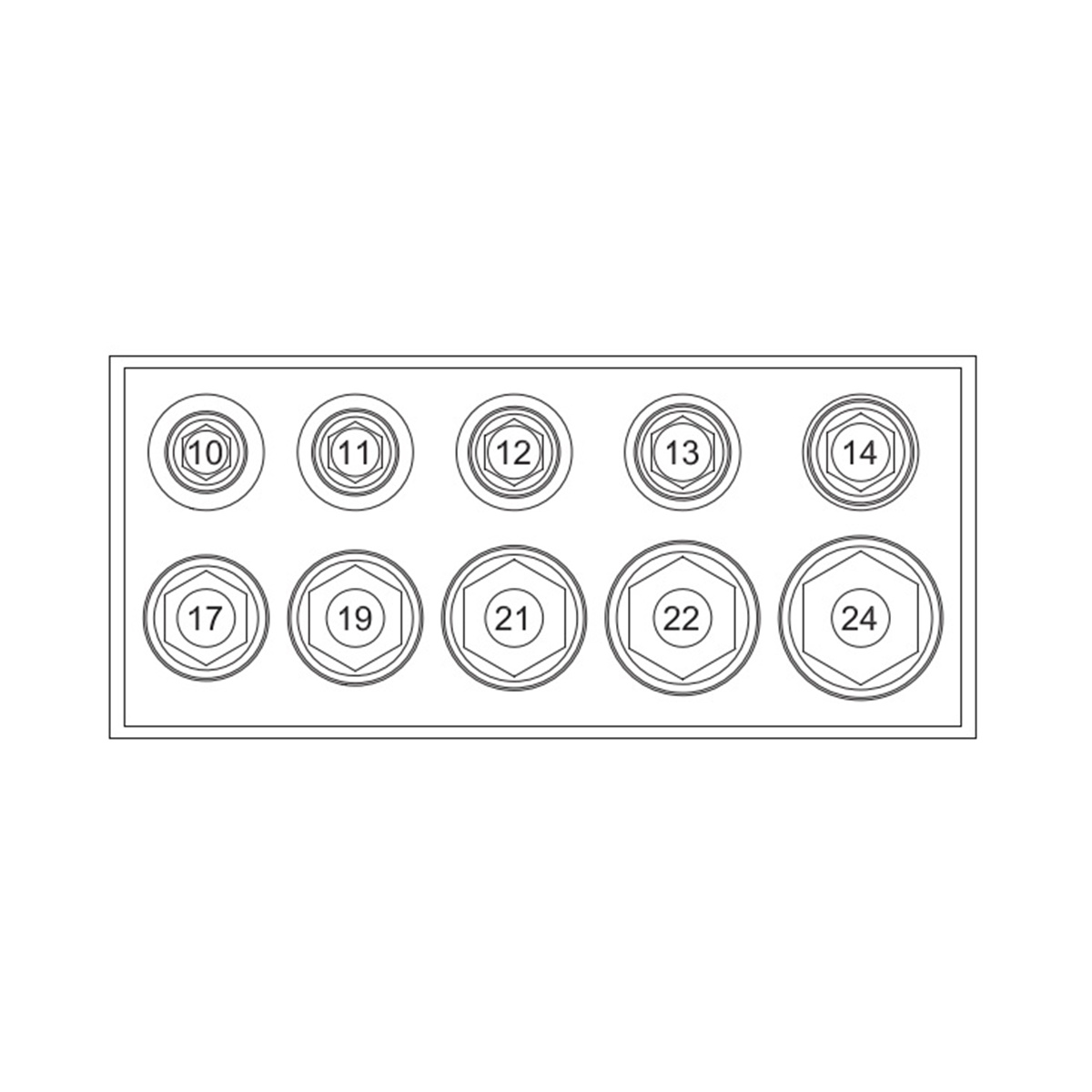10 – 11 – 12 – 13 – 14 – 17 – 19 – 21 – 22 – 24 میلیمتر |